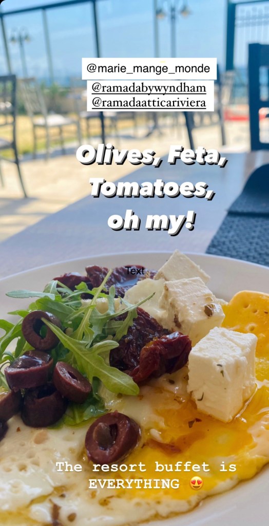 When in Greece, olives are a must-try snack. Simply put, they’re just better here. While they’re delicious any time of the day and I’ve had them with breakfast, as a stand-alone snack, and incorporated in lunch and dinner dishes, I recently learned that they’re especially great to eat before bed. Apparently, the tryptophan and magnesium make them the perfect bedtime snack to endure sleep. Between the pre-bed olives, a few sips of ouzo and the sound of the ocean from my Ramada by Wyndham Athens Attica Riviera hotel room, I’ve been sleeping like a baby in Greece. You deserve that as well! Regardless of what time of day you have them, you’ve definitely got to eat some olives!